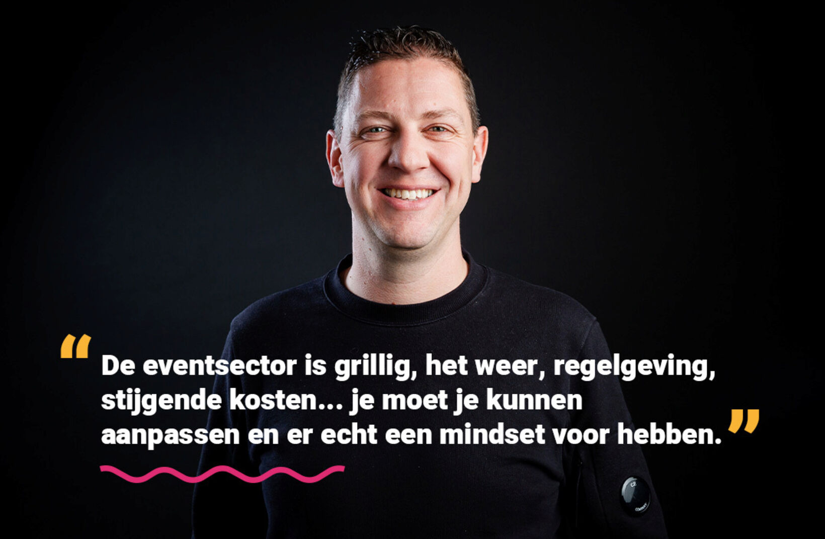 Marijn, propriétaire de 𝐃𝐚𝐫𝐞 𝐭𝐨 𝐃𝐫𝐞𝐚𝐦, démontre que les grandes choses commencent souvent par de petites choses. Il est aujourd'hui à la tête de 𝐒𝐮𝐧𝐫𝐢𝐬𝐞 𝐅𝐞𝐬𝐭𝐢𝐯𝐚𝐥, l'un des festivals de danse à la croissance la plus rapide de Flandre. Lors de la dernière édition, Sunrise a attiré 75 000 visiteurs en trois jours, dont 17 500 ont séjourné au camping. Mais le secteur de l'événementiel n'est pas que plaisir et agrément, explique-t-il : « Le secteur de l'événementiel est capricieux : météo, réglementations, hausse des coûts… il faut savoir s'adapter et avoir l'état d'esprit nécessaire. »